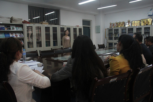 內蒙古電視臺《娜荷芽》欄目組前來傳媒系舉行專場招聘會 為做好2013屆畢業生就業服務工作,給予畢業生提供滿意的就業崗位,2013年5月7日下午,傳媒系將內蒙古電視臺蒙語衛視《娜荷芽》欄目組以制片青格勒老師為首的一行9人請進校園在傳媒系會議室為2010級播音與主持藝術專業畢業生舉行了招募節目主持人專場招聘會。 招聘采取專業問答與面試相結合的形式進行,該專業的17名同學參加了專場招聘會。他們在招聘會上充分展示了自己的才華和能力。招聘單位對應聘的同學給予了高度評價,并與其中3名同學達成了就業意向。