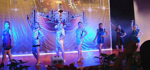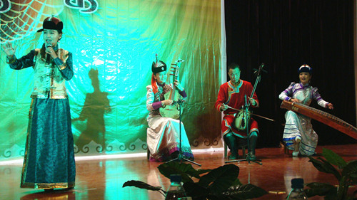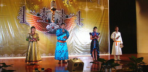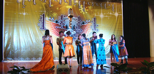 晚會首先由女子電聲樂隊的一曲激情四射的《吉他之歌》開場就立刻引爆全場氣氛。蘇日嘎等同學采用不同的組合形式,用飽含深情的詩歌展示了語言和聲音的魅力。散薩日等同學表演的蒙古貝爾格舞蹈以其新穎的表演創意、獨特的民族風情以及洋溢的青春味道贏得了觀眾陣陣掌聲。紅格爾珠拉等近20名同學的民族服裝展示流光溢彩,給大家帶來了民族與時尚元素融合的視覺沖擊。女生薩克斯獨奏《暗香》、幽默風趣的老人情景舞蹈、寓意深刻的小品《錄取主持人》等節目也都一一成為晚會的亮點。現場掌聲和歡呼聲不斷,演員和觀眾都沉浸在一片歡樂的海洋之中。