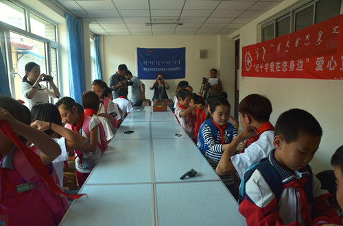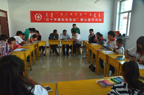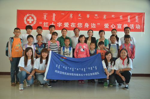 2013年9月3日上午,在傳媒系團(tuán)總支的帶領(lǐng)下,傳媒系紅十字救援隊(duì)來到了和呼和浩特市蒙古族學(xué)校。小學(xué)教導(dǎo)處主任寶老師帶著10名小學(xué)生在學(xué)生活動(dòng)室熱情地迎接了我們。