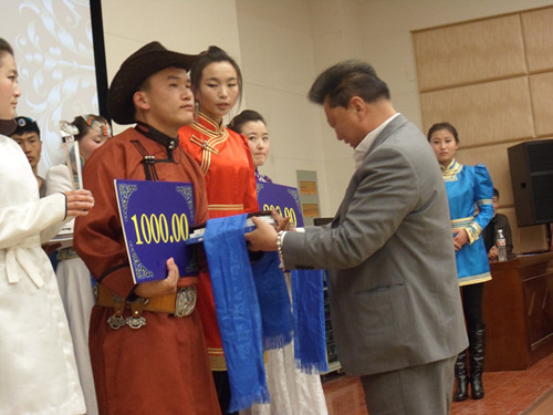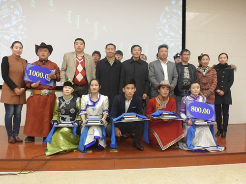 2013年3月19日下午三點,傳媒系蒼天的駝羔詩歌協會在學院圖書館一樓報告廳舉辦了主題為“吉祥五珍”的全區高校蒙語詩歌比賽。最終由來自內蒙古民族大學的舒古日同學摘得桂冠,內蒙古大學烏達木、我院滿達來同學獲得亞軍,內蒙古醫科大學旭日、內蒙古大學特穆爾巴特及我院那音太同學獲得季軍。