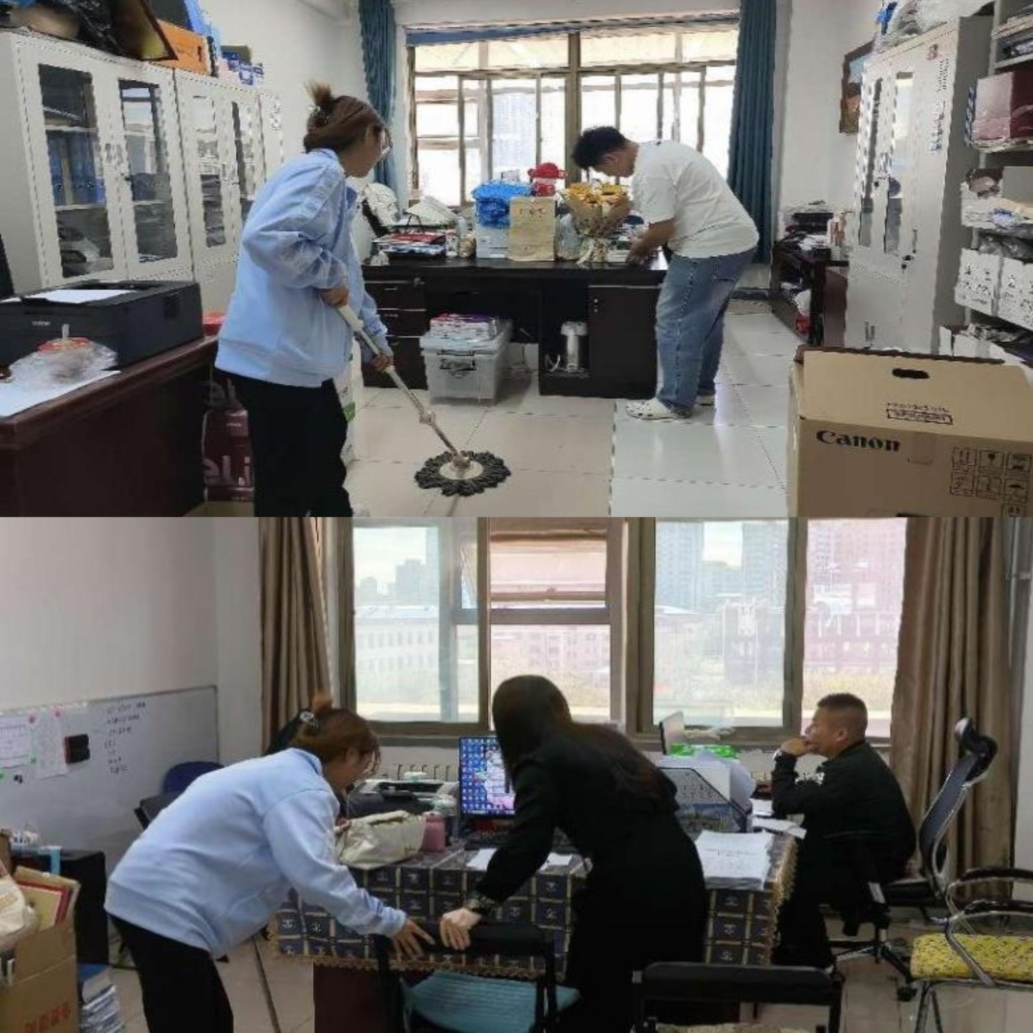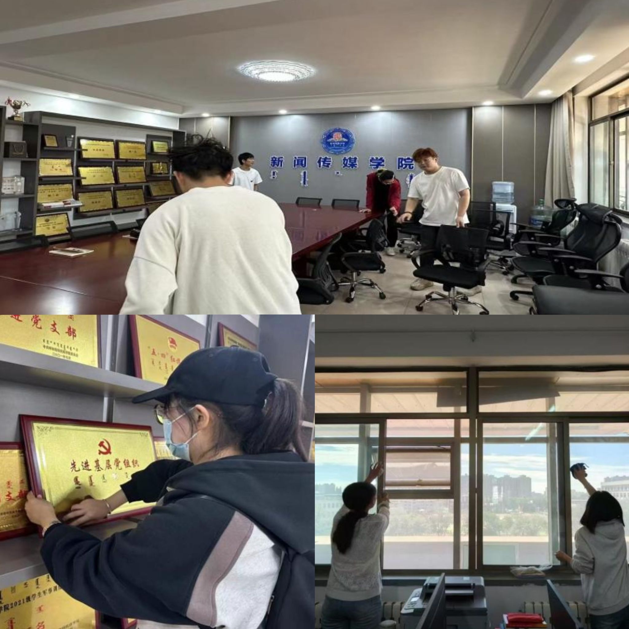 活動現場,黨員和積極分子們以實際行動向各位老師致以節日的祝福。他們踴躍參加,團結協作,對學院的辦公場所及公共區域進行了全面清掃,為老師們營造了一個潔凈舒適的工作環境,不僅彰顯了新聞傳媒學院學生黨支部對教師的關懷和敬意,也展現了他們服務校園的無私精神。
