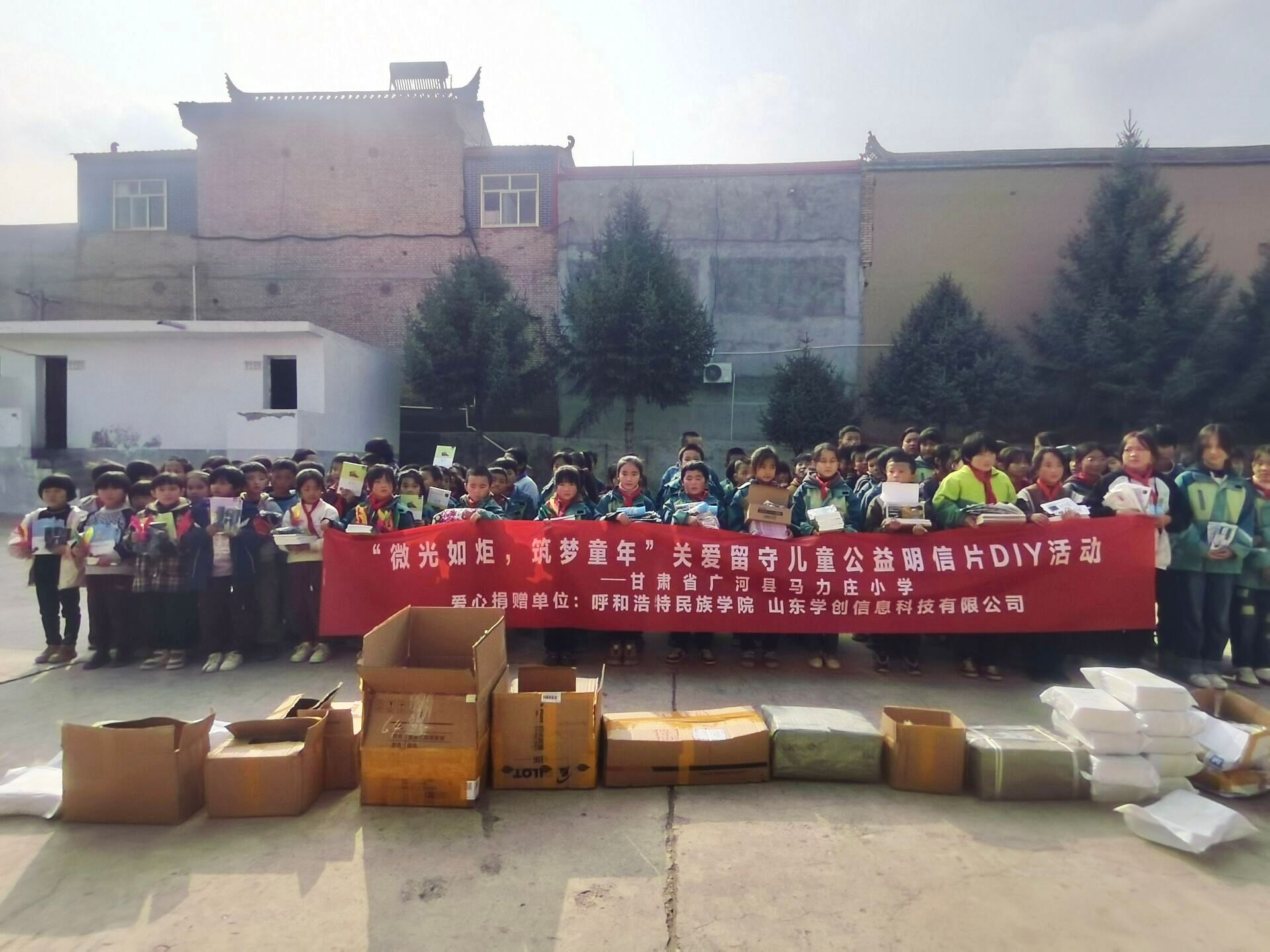 活動當天,各類精心準備的捐贈物資承載著我院師生們的深切關愛,抵達甘肅省廣河縣馬力莊小學。一箱箱嶄新的書籍、一套套精美的文具,以及各類體育用品都經過悉心挑選,希望能為改善小朋友們的學習和生活條件盡一份綿薄之力。