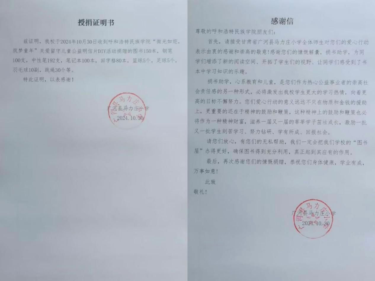 此次愛心捐贈活動的圓滿完成,只是新聞傳媒學院愛心征程中的一個小小站點。為了表達感謝,廣河縣馬力莊小學還為我學院送來感謝信。在未來的日子里,我們期待能夠舉辦更多這樣有意義的活動,不斷拓展愛心的邊界,為更多有需要的群體送去關懷與幫助。