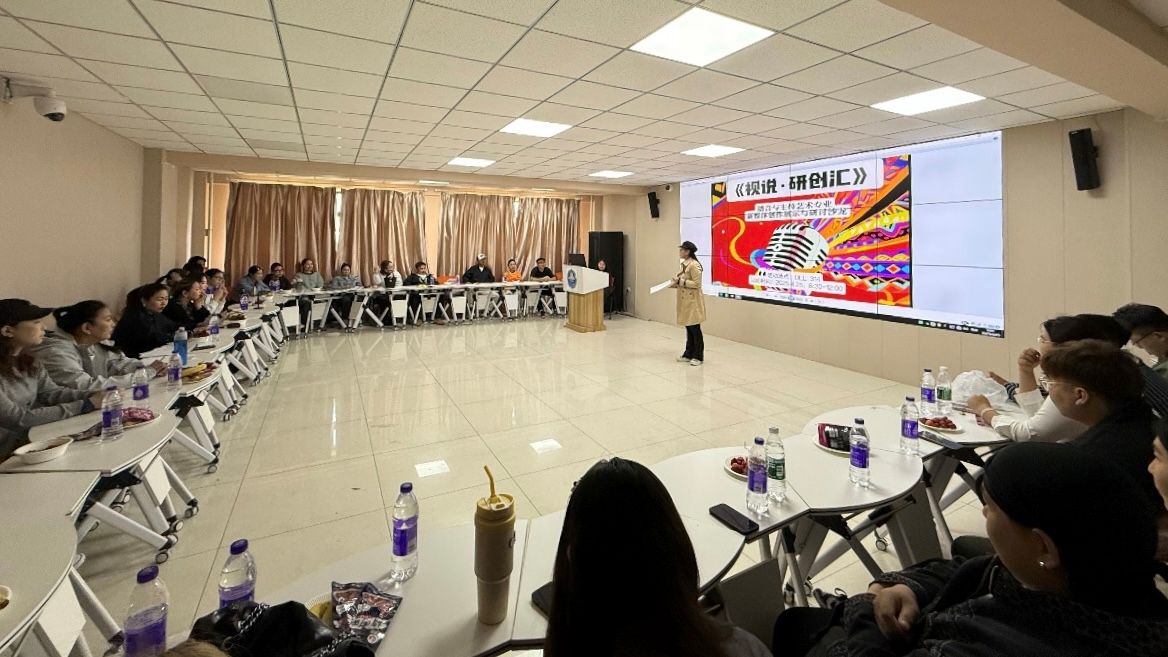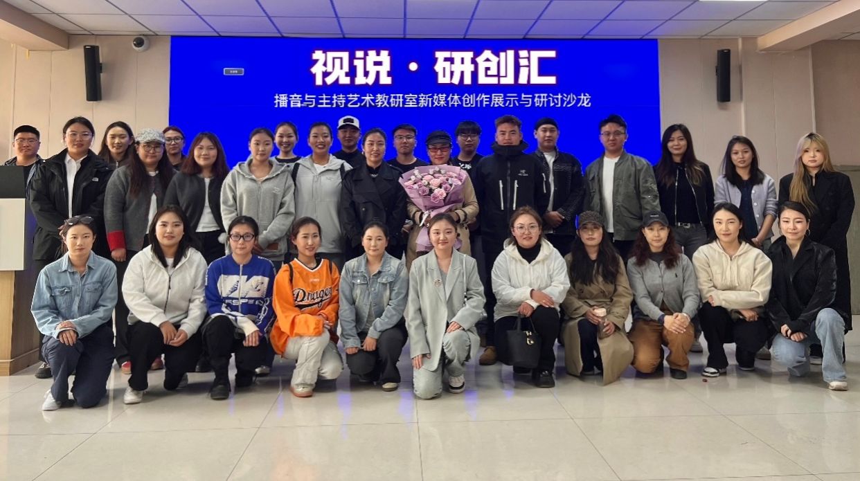 為深化課程思政內涵,推動教學與科研協同發展,探索新媒體時代播音與主持藝術專業的轉型發展路徑,4月25日上午,新聞傳媒學院播音與主持藝術教研室在都林樓314教室成功舉辦“視說?研創匯”新媒體創作展示與研討沙龍活動。院長額爾敦畢力格、副院長安迎春、播音與主持藝術教研室全體教師到場觀摩指導。