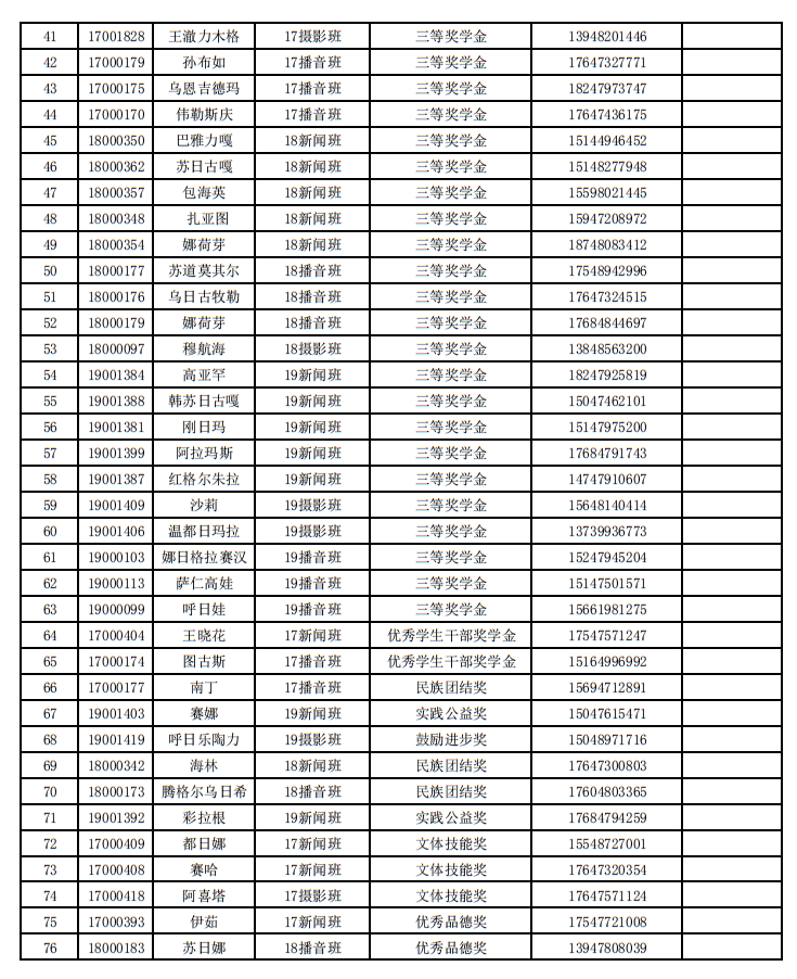 三等獎(jiǎng)學(xué)金:哈斯呼、娜木罕、陶利等32位學(xué)生;