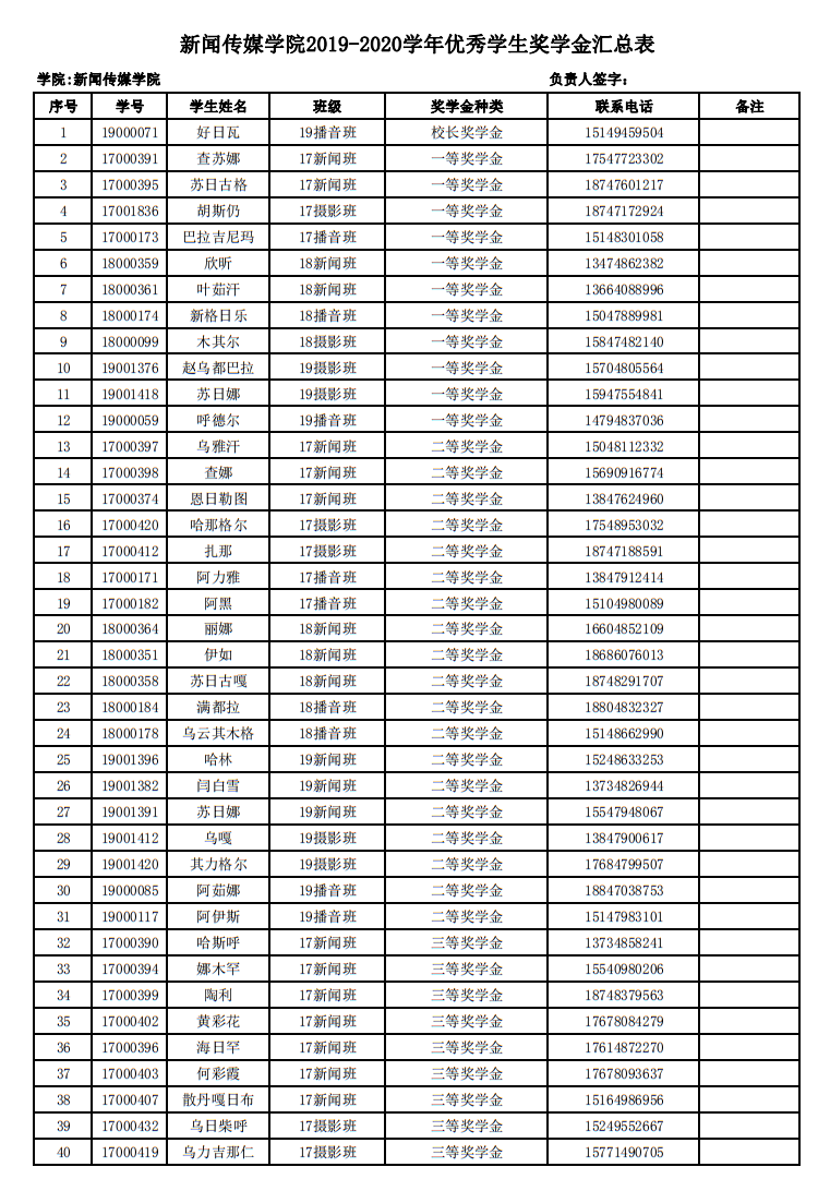 為鼓勵(lì)學(xué)生勤奮學(xué)習(xí),促進(jìn)德、智、體、美、勞等方面 全面發(fā)展,貫徹《普通高等學(xué)校學(xué)生管理規(guī)定》精神,根據(jù)《關(guān)于開展2019-2020學(xué)年優(yōu)秀學(xué)生獎(jiǎng)學(xué)金評(píng)定工作的通知》(呼和民院學(xué)字【2020】38 號(hào)),經(jīng)學(xué)生本人申請(qǐng),班級(jí)民主推薦,院團(tuán)總支學(xué)工辦認(rèn)真評(píng)選,院黨政聯(lián)席會(huì)議評(píng)審小組審核通過(guò),現(xiàn)將新聞傳媒學(xué)院2019-2020學(xué)年優(yōu)秀學(xué)生獎(jiǎng)學(xué)金名單公示如下: