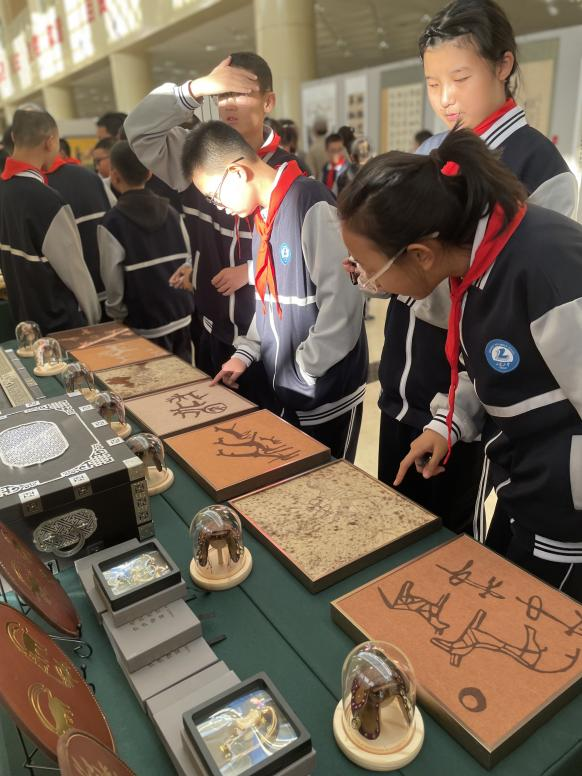 活動期間,學校展出氈畫皮畫、手工藝品、文創作品等師生創作制作的非遺文化藝術作品,受到現場群眾紛紛駐足欣賞。