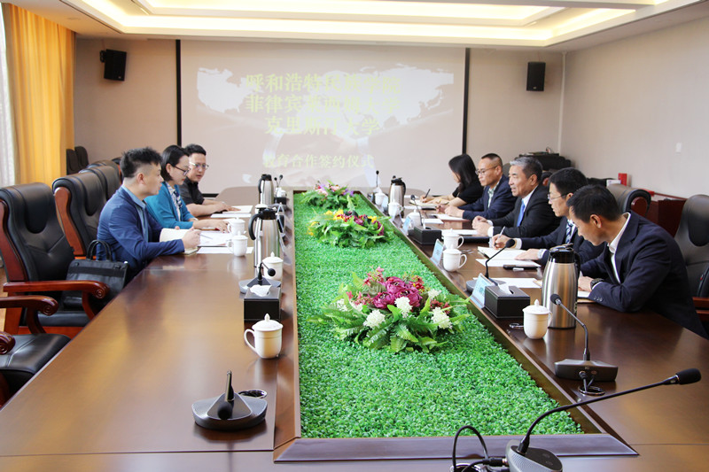 會談中,格日樂圖校長向菲方代表團一行介紹了我校在人才培養、科研實力、學校發展規劃及國際交流等方面的情況。菲方代表依次介紹了萊西姆大學、克里斯汀大學的基本情況、招生辦法和辦學模式等。會上,雙方就聯合培養、師資培訓、師生互訪及舉辦國際學術會議等事宜進行了深入探討。