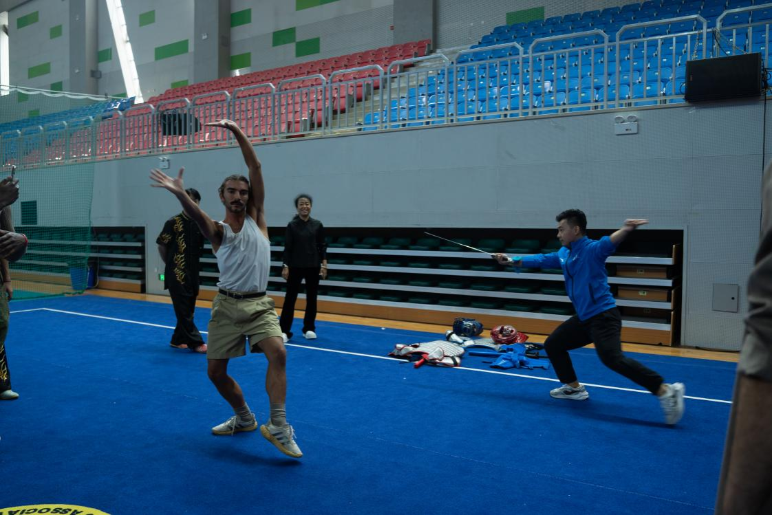 體育學(xué)院學(xué)生帶來(lái)的中國(guó)傳統(tǒng)武術(shù)教學(xué)實(shí)踐展示,則以剛勁有力的姿態(tài)點(diǎn)燃現(xiàn)場(chǎng)熱情。訪問(wèn)團(tuán)師生在學(xué)習(xí)禮儀手勢(shì)與經(jīng)典招式的過(guò)程中,深入了解武術(shù)深厚的歷史底蘊(yùn)。活動(dòng)中,體育學(xué)院武術(shù)教師王志飛與意大利舞蹈家攜手呈現(xiàn)了“舞”與“武”的即興創(chuàng)意融合表演,既展現(xiàn)了體育與藝術(shù)的不同魅力,更詮釋了中外文化互鑒的美好圖景,贏得全場(chǎng)熱烈的掌聲。