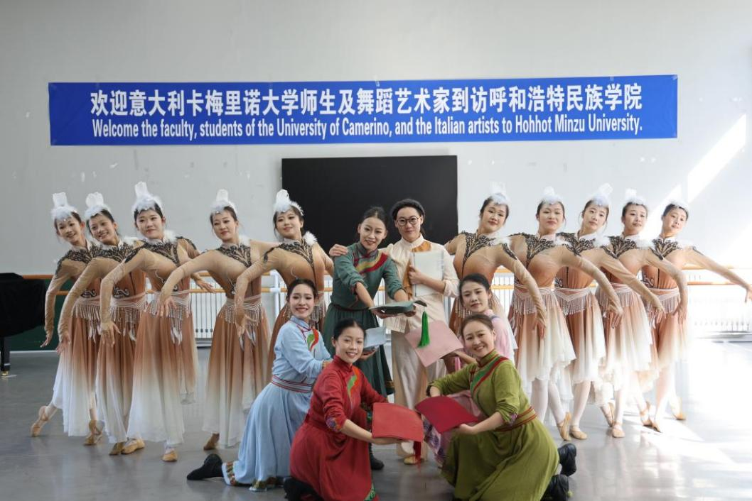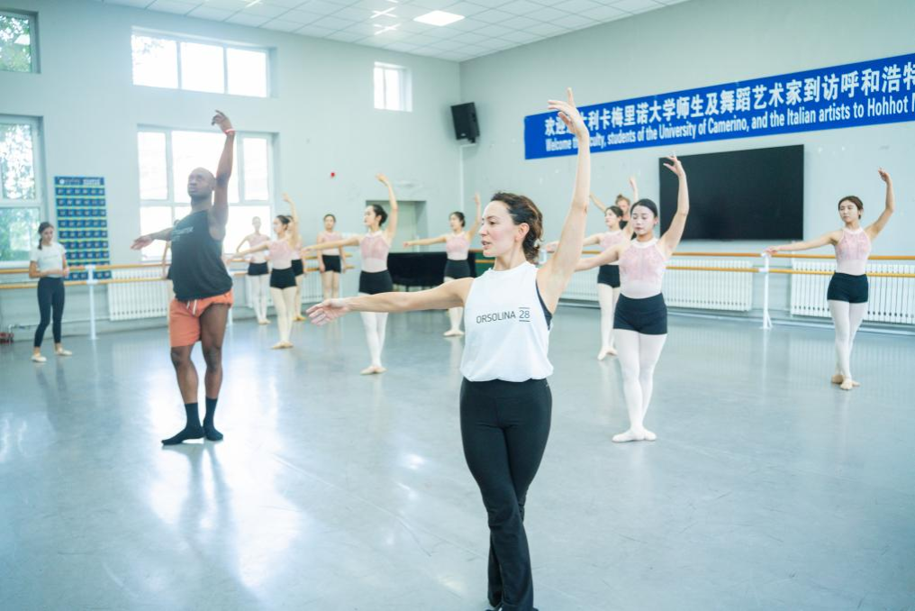 意大利舞蹈專(zhuān)家 “德納羅?奧羅拉”“比奧薩?瑪利亞”“蘭波內(nèi)?埃麗卡”“埃格蒙特?朱莉”“塞拉?米凱萊” 等五位專(zhuān)家為我校師生授課。他們結(jié)合意大利舞蹈的特點(diǎn),通過(guò)專(zhuān)業(yè)講解、動(dòng)作示范和互動(dòng)教學(xué),深入解析各類(lèi)舞蹈的表現(xiàn)力與技巧核心。交流尾聲,我校音樂(lè)與舞蹈學(xué)院教師李輝以一段韻味醇厚的蒙古舞表演致謝意方分享,將蒙古族傳統(tǒng)舞蹈的獨(dú)特魅力生動(dòng)傳遞。此次交流課生動(dòng)呈現(xiàn)了中意兩國(guó)舞蹈文化的獨(dú)特魅力與精髓,搭建起一座兩國(guó)師生深互學(xué)互鑒的藝術(shù)橋梁。