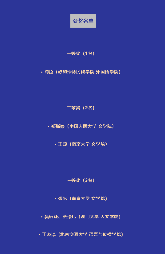 隨著第22屆國際城市語言學會年會的圓滿落幕,本屆“優(yōu)秀論文獎”正式揭曉。在匿名初評與現(xiàn)場復評兩輪嚴格評審后,最終產(chǎn)生一等獎1名、二等獎2名、三等獎3名。我校外國語學院教師海拉獲一等獎。
