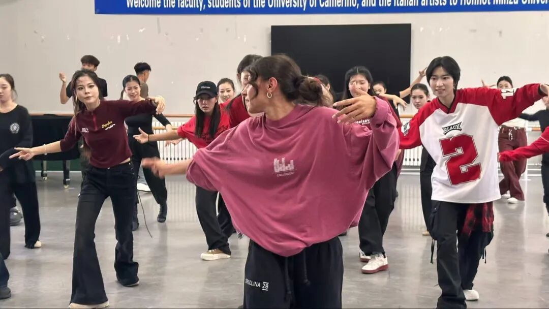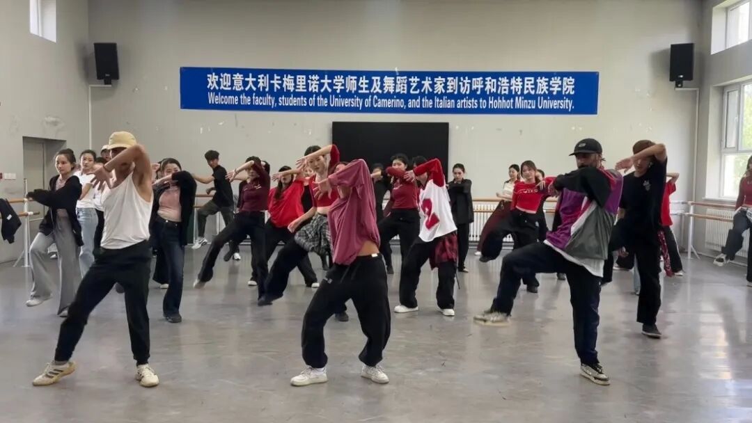 上午9時,活動在音樂學院舞蹈教室正式拉開帷幕。我校團委大學生藝術團和街舞社團的27名學生共同帶來了精彩的演出。其中,大學生藝術團帶來的民族舞《四海歡歌》尤為亮眼——舞者以極具張力的肢體語言,將民族舞蹈的奔放熱情展現(xiàn)得淋漓盡致,既彰顯出蒙古族傳統(tǒng)藝術的深厚底蘊,更成為傳播中華文化的生動載體,贏得了意大利等國師生的一致好評。