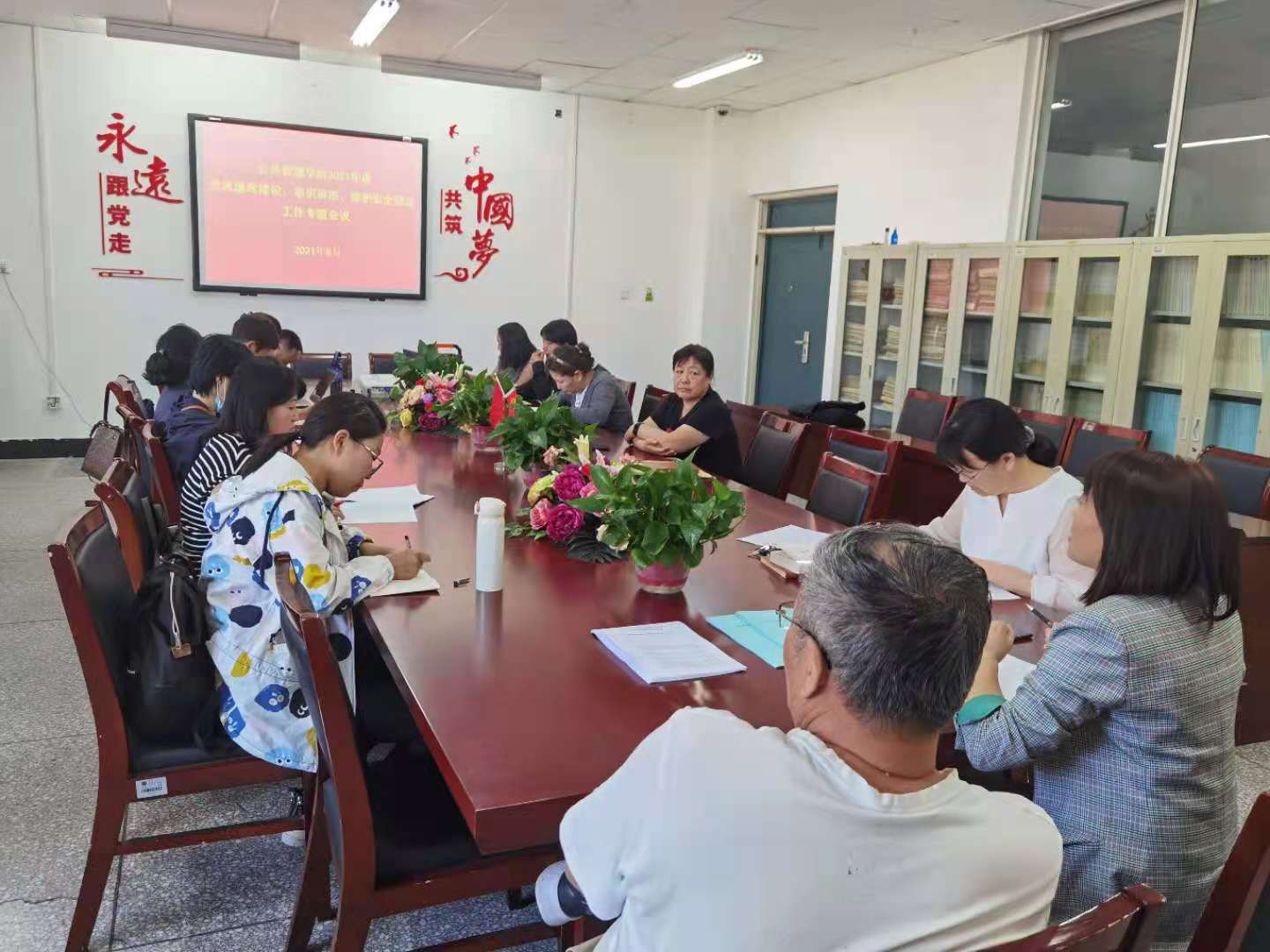 為貫徹落實中央、自治區以及學校黨委的部署安排,全面加強學院黨風廉政建設、意識形態、安全穩定工作,進一步統一思想、堅定理想信念、牢記使命,保障學院各項事業持續健康發展,6月11日下午,在尚智樓112會議室召開公共管理學院2021年度黨風廉政建設、意識形態和安全穩定工作專題會議。學院班子成員、全體教職工參加會議,會議由黨總支書記海霞主持。