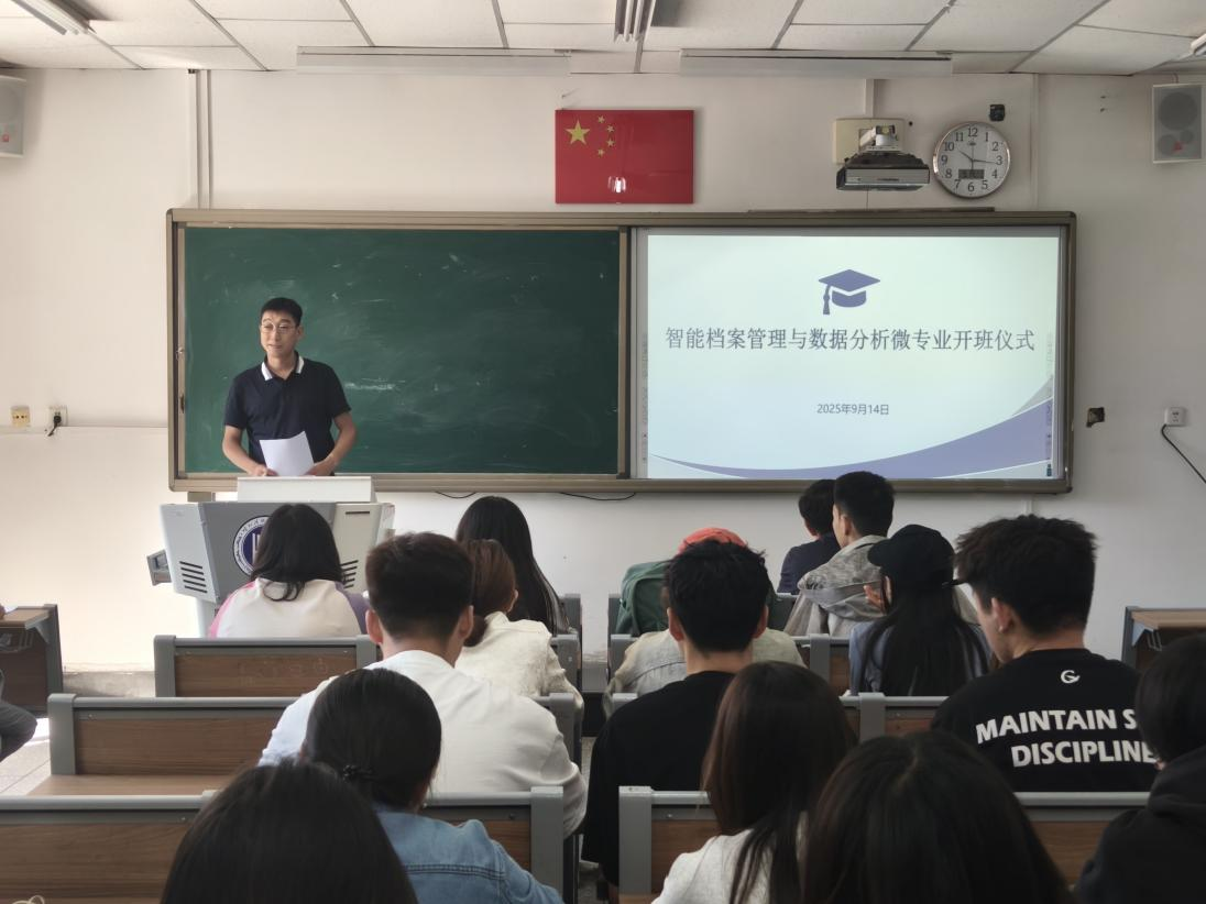 9月14日上午10時,管理學院首期《智能檔案管理與數(shù)據(jù)分析》微專業(yè)開班儀式順利舉行。院長哈斯同力嘎、專業(yè)帶頭人(教務處副處長)青格樂圖、班主任寶連以及首期班的28位同學共同參與了此次活動。