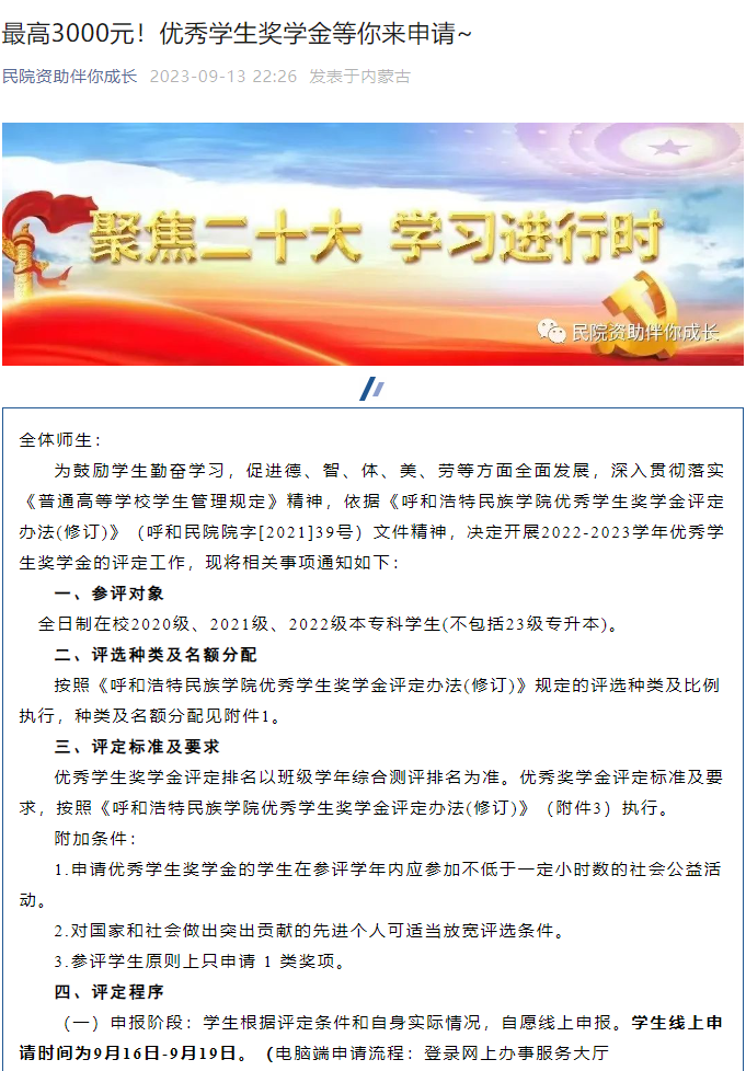 轉(zhuǎn)載學(xué)校黨委學(xué)生工作部(處)《優(yōu)秀學(xué)生獎學(xué)金通知》