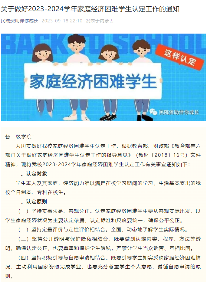 轉(zhuǎn)載學(xué)校黨委學(xué)生工作部(處)《關(guān)于做好2023-2024學(xué)年家庭經(jīng)濟(jì)困難學(xué)生認(rèn)定工作的通知》