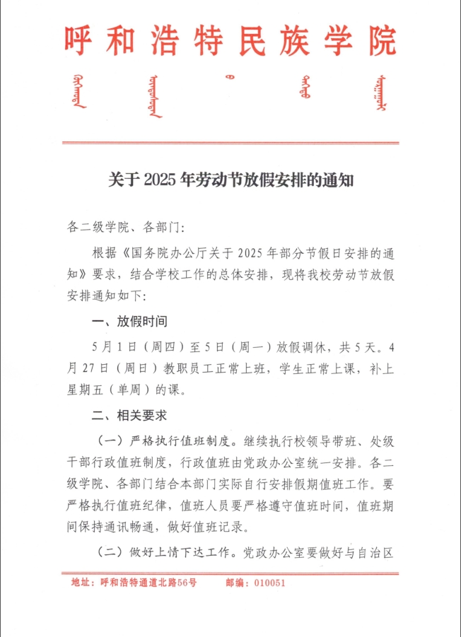 關(guān)于2025年勞動(dòng)節(jié)放假安排的通知
