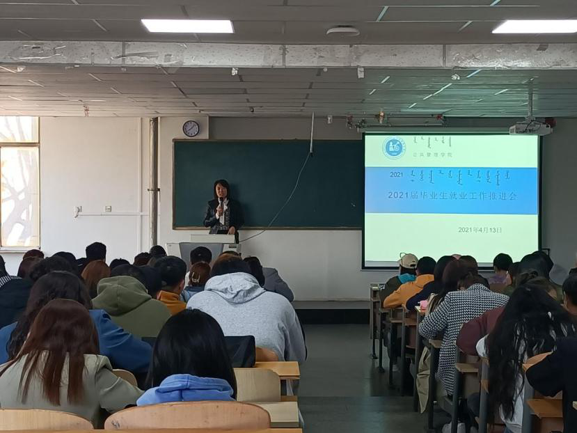 會上,黨總支書記海霞傳達了學校就業工作會議精神,在分析當前畢業生就業狀況基礎上對下一階段工作做了安排部署,指出要高度重視、精心謀劃,全員動員、精準發力,多措并舉,有效推進,大力推進畢業生更充分更高質量就業。黨總支副書記額爾敦格日勒進行了動員講話,鼓勵廣大畢業生一要樹立正確的就業觀和擇業觀,開闊就業思路,找到未來的發展方向;二要堅定就業信心,在應聘過程中做好充分準備,保持良好就業心態,積極行動,爭取更多的就業機會。最后,學院輔導員前達蒙老師圍繞就業工作業務辦理、就業協議書填寫、“北疆就業”平臺的畢業生簽約和派遣等環節進行了詳細講解。
