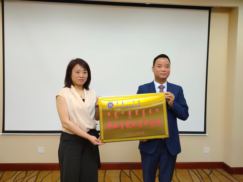 座談會上,雙方圍繞企業人才需求及學校就業需求、形勢和專業建設、畢業生頂崗實習及就業等方面進行了深入交流。 隨后,財務總監王永霞與包倉處長分別代表雙方簽訂了合作協議,學院黨總支書記海霞向豪生大酒店授了“呼和浩特民族學院畢業生實訓基地”牌匾。