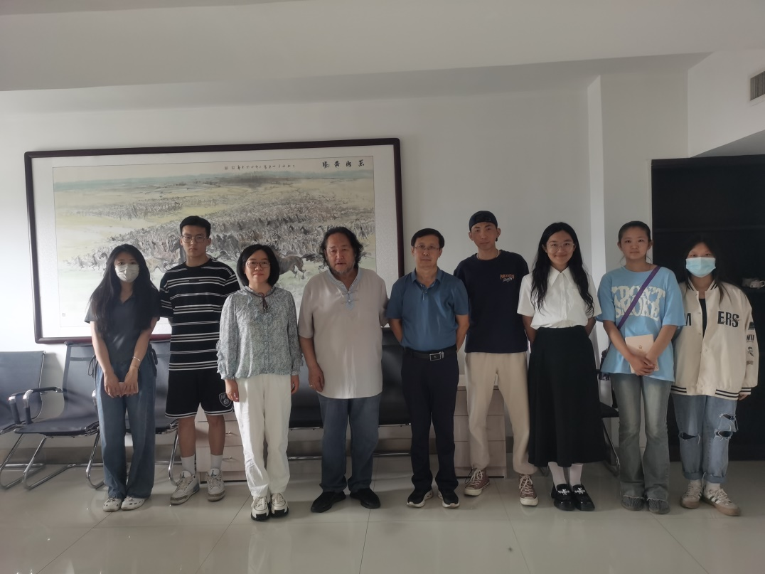 2023年7月2日,公共管理學院院長哈斯同力嘎博士帶領“智記民歌”創新創業團隊以及“社會調查”課學生赴大漠文創園參觀學習。內蒙古自治區藝術研究院(內蒙古自治區非物質文化遺產保護中心)娜布其全程陪同指導本次學習活動。活動第一站在區級非物質文化遺產傳承人朝魯的工作室進行,“智記民歌”項目成員們向朝魯同志進行介紹項目,朝魯同志對學生團隊進行耐心的指導和親切的鼓勵。