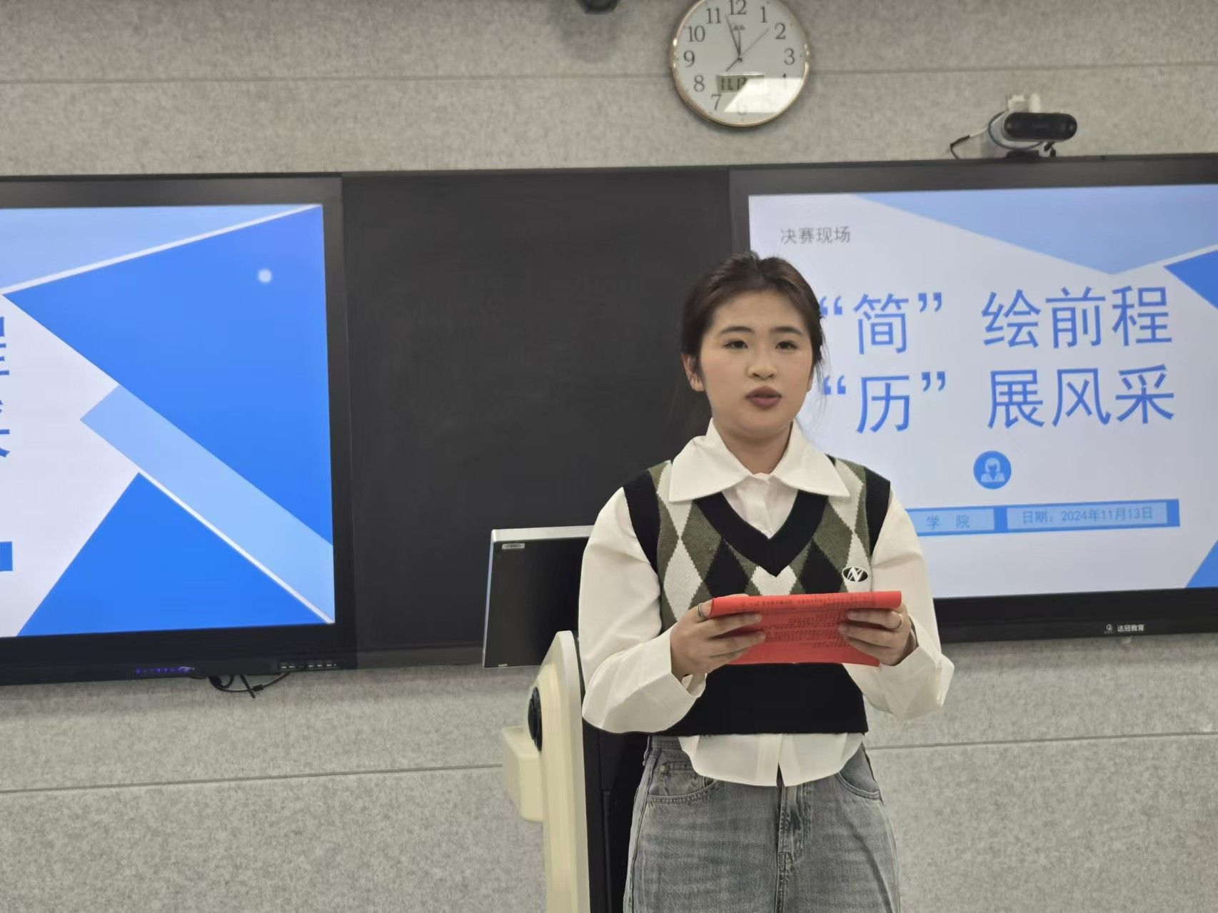 為進一步提升學生求職能力,濃厚就業氛圍,樹立正確的就業觀念,提高學生的求職競爭力,管理學院于2024年11月13日晚開展“簡”繪前程,“歷”展風采簡歷大賽。