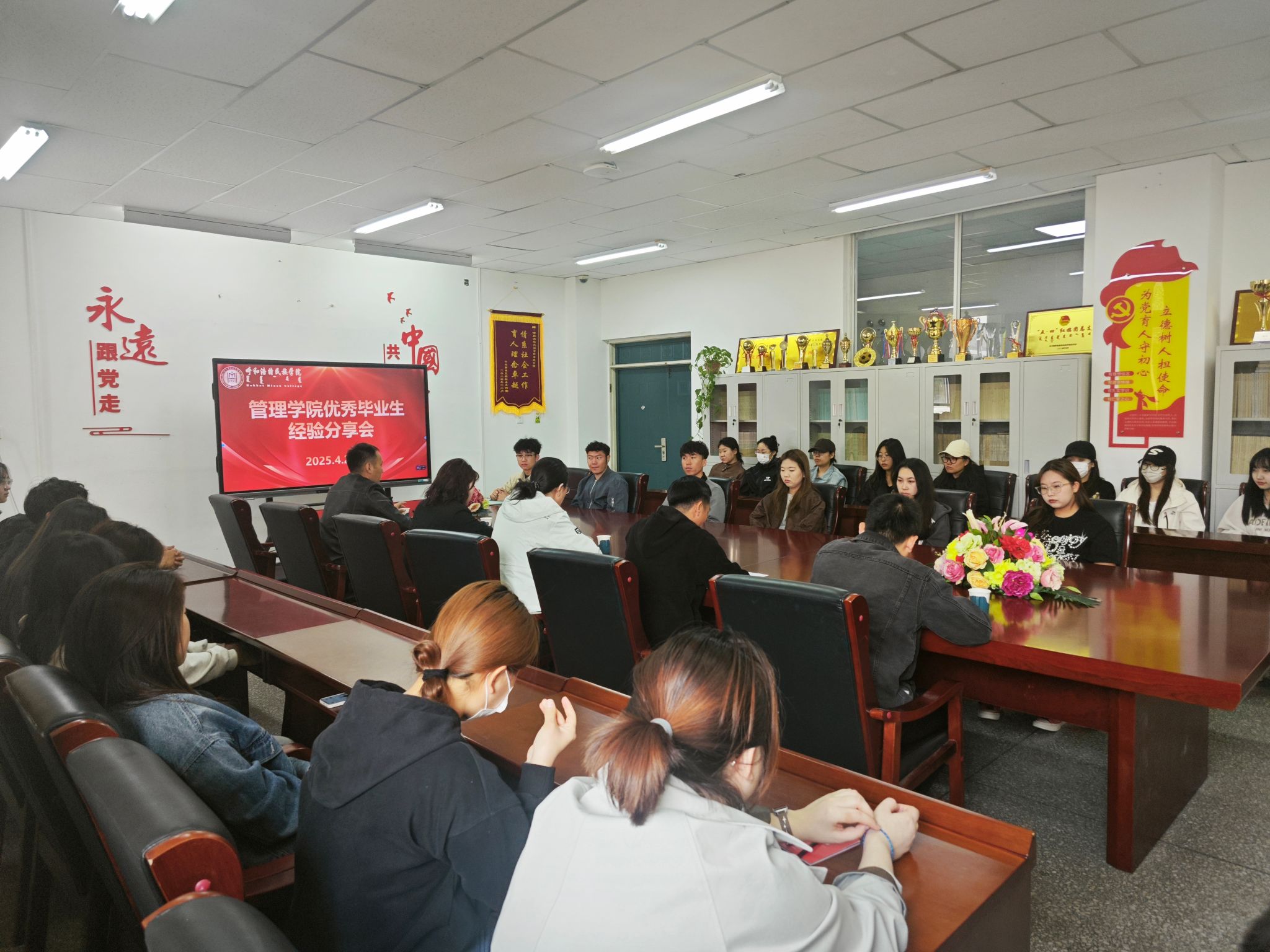 4月26日上午,管理學院在尚智樓112會議室舉辦優秀畢業生經驗分享會。現就職于中儲糧內蒙古分公司的優秀畢業生代表王慧敏受邀參會,為學弟學妹們分享成長經驗。
