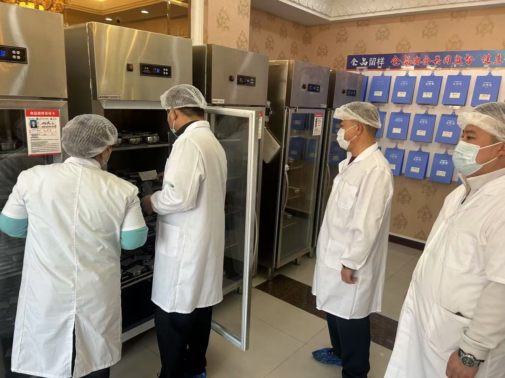 聯合檢查工作組人員按照食品安全“四個最嚴”的要求,深入我校食堂的留樣間、副食庫、切配間、主食間、后廚間等,就食堂主體責任的落實、食品安全檔案的建立、購進食材是否嚴格落實索證索票、加工制作過程是否規范、設施設備是否完善并正常運轉、餐飲具的清洗消毒是否到位、是否按照規定進行食品留樣并記錄等情況進行詳細檢查和指導。