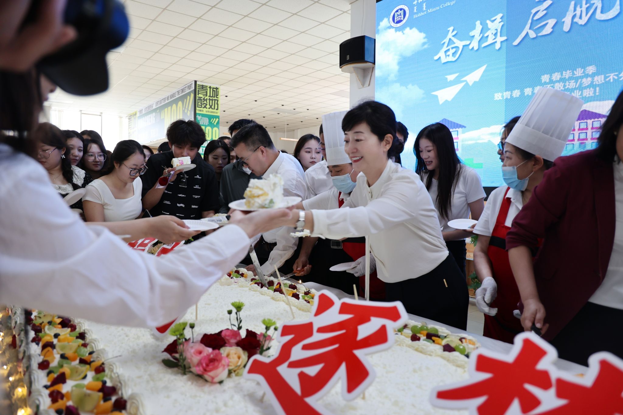 校領導們為畢業生切蛋糕、送祝福。他們與畢業生親切交談,鼓勵大家在新的人生征程上繼續拼搏,勇敢逐夢。校領導們的關懷讓畢業生們深受感動,現場氣氛溫馨而熱烈,充滿了濃濃的師生情誼。