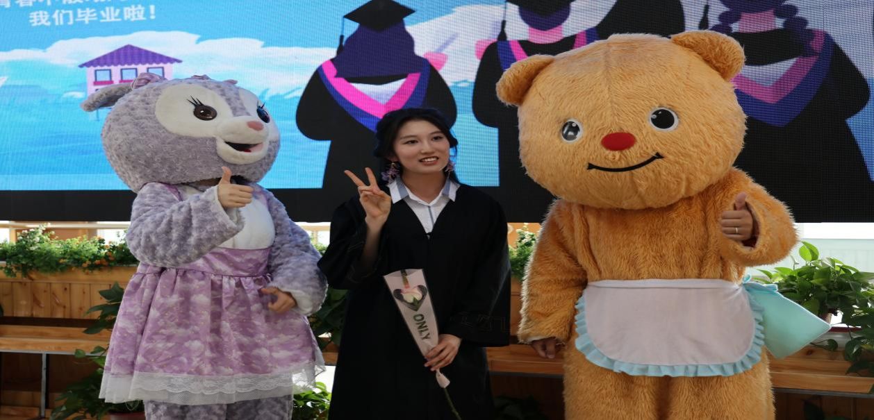 活動現場,身著玩偶服裝的工作人員成為一道獨特的風景線。他們熱情洋溢,為畢業生們送上鮮花,寓意著為畢業生們的未來“錦上添花”。手捧鮮花的畢業生們臉上洋溢著幸福的笑容,紛紛與可愛的玩偶互動合影,用鏡頭定格這美好的瞬間,留下青春的珍貴記憶。
