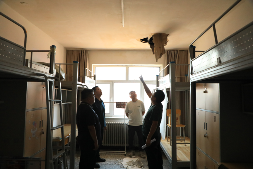 檢查組先后到9號學生公寓、6號學生公寓、音樂與舞蹈學院、辦公樓東側、南圖書館、北食堂、都林樓北側、綜合樓一層、鑄牢館2、4、5層等施工現場進行全面細致的安全隱患排查,聽取了相關負責人對項目實施和進展情況的匯報,重點了解了校內各項工程進度安排、安全生產防護措施落實、動火作業審批及施工人員日常管理等情況,明確了各施工現場安全員的職能職責,強調要時刻繃緊安全弦,持續完善安全管理制度,及時排查整改安全隱患問題,扎實做好施工現場安全防護;針對汛期強降雨導致的6號學生公寓頂樓屋頂漏雨情況,要求相關責任部門盡快維修處理,及時更換樓頂防水設施,防止雨水滲漏損壞學生財物,確保學生新學期返校正常住宿。同時,要求各單位切實扛起安全主體責任,確保責任到崗到人,扎實落實假期值班值守工作,持續強化校園重點區域、關鍵部位隱患自查、安全巡查,織密扎牢暑期校園安全防護網
