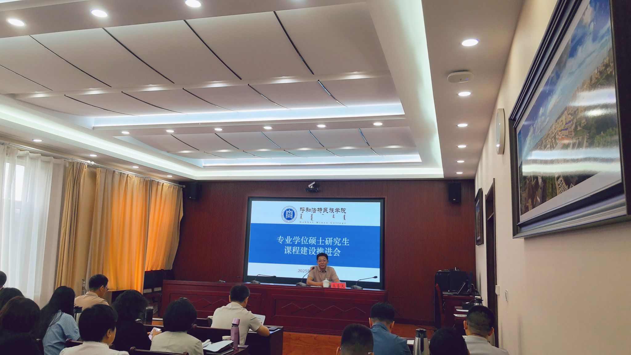 會上,學校國家級一流本科課程負責人、發展規劃處副處長哈達結合自身國家級一流本科課程建設經驗,圍繞研究生課程建設的重要性、專業學位碩士培養定位及課程改革路徑展開深入分享。他提出,專業學位碩士研究生課程建設要遵循研究生課程建設的原則,緊扣專業學位研究生教育相關文件精神和要求,精準把握專業學位研究生課程建設的理念與特征;應以課程現存問題與產出為導向,持續優化課程目標、內容、方法、評價體系及團隊建設等“五大要素”,進一步增強課程的實踐性與開放性,不斷提升課程建設質量。