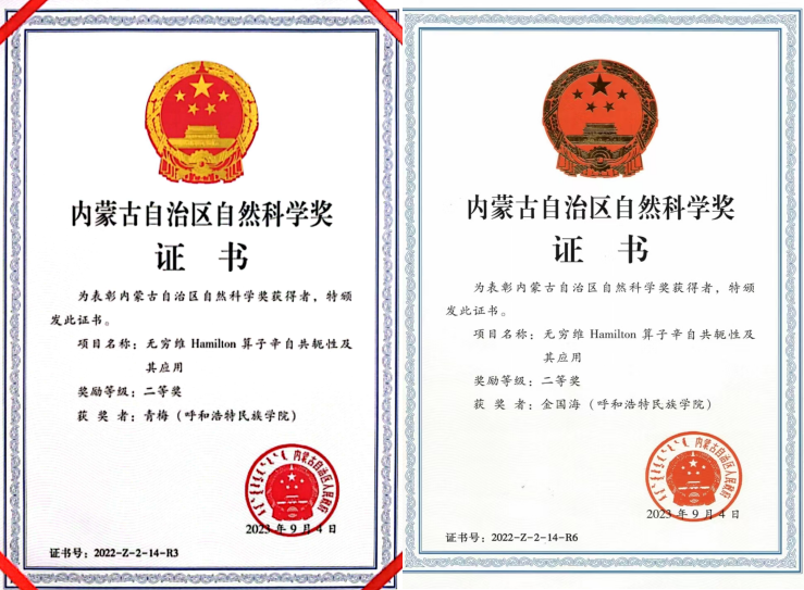 2021年“無窮維哈密頓系統及偏微分方程研究創新人才團隊”入選自治區“草原英才”工程產業創新人才團隊。2024年數學與大數據學院被學校評為科研工作先進集體。