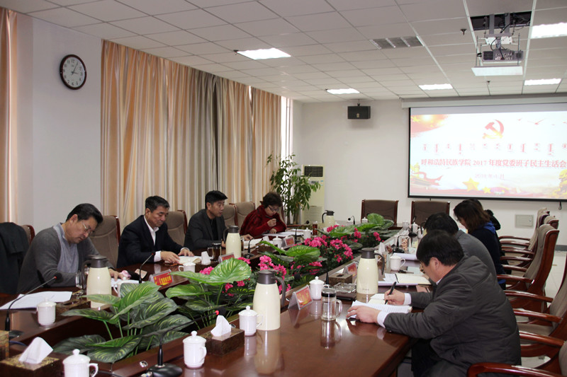 按照《內蒙古自治區紀委機關 內蒙古自治區黨委組織部關于開好2017年度縣以上黨和國家機關黨員領導干部民主生活會的通知》(內組通字[2017]56號)要求,學校黨委于2018年1月26日在綜合樓1102會議室召開了2017年度領導班子民主生活會。校黨委班子成員參加會議,副院長納麗娜、黨委辦公室主任吳阿古拉列席會議。會議由黨委書記孫國權主持。