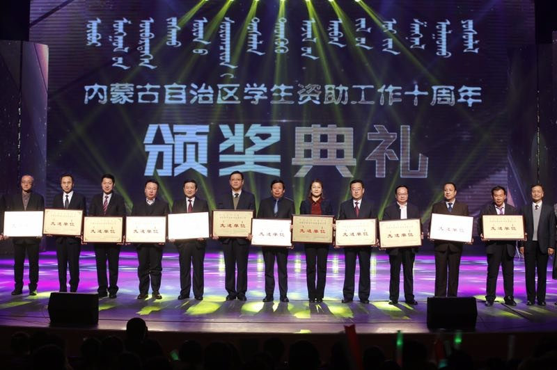 當(dāng)晚由自治區(qū)教育廳主辦的“十年助學(xué)路,筑夢(mèng)青春行”自治區(qū)學(xué)生資助工作10周年頒獎(jiǎng)典禮在內(nèi)蒙古藝術(shù)學(xué)院音樂廳舉行。自治區(qū)黨委常委、宣傳部部長(zhǎng)白玉剛,各高校分管學(xué)生工作的校領(lǐng)導(dǎo)、學(xué)生處長(zhǎng)、資助中心主任和駐呼高校學(xué)生代表參加頒獎(jiǎng)典禮。