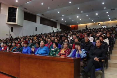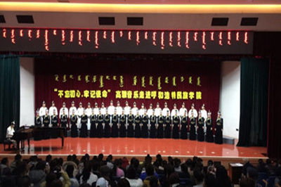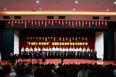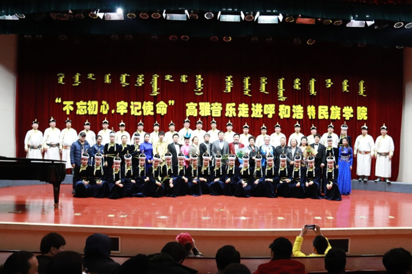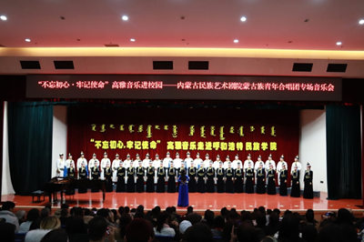 為了更好的宣傳貫徹黨的十九大會(huì)議精神,重溫黨的光輝歷程,謳歌黨的豐功偉績(jī),弘揚(yáng)民族傳統(tǒng)文化,營(yíng)造高雅校園文化氛圍,校團(tuán)委于12月22—23日,邀請(qǐng)內(nèi)蒙古民族藝術(shù)劇院蒙古族青年合唱團(tuán)在圖書館二樓報(bào)告廳舉辦了兩場(chǎng)“不忘初心·牢記使命”高雅藝術(shù)進(jìn)校園活動(dòng)。校黨委副書記胡春梅教授出席活動(dòng),兩天共計(jì)1000余名師生觀看了演出。