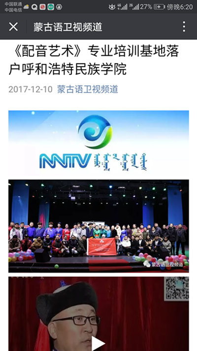 12月9日上午,傳媒系與內蒙古配音藝術協會在我校演播廳共同舉辦了《配音藝術》專業課程走進校園課堂活動。內蒙古廣播電視臺有關領導、內蒙古廣播電視臺譯制中心和內蒙古民族語電影譯制中心的相關領導和配音演員以及我校蒙古語言文學系的部分領導和漢蒙翻譯教研室的老師們出席了活動。內蒙古廣播電視臺蒙古語衛視、蒙古語廣播、內蒙古日報社和中國蒙古語新聞網等媒體單位對此次活動進行了全程報道。