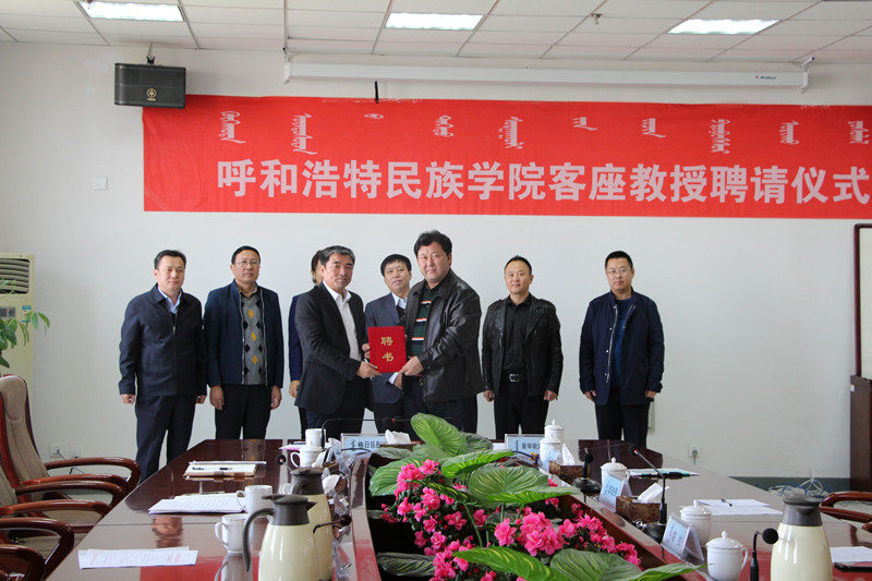 格日樂圖院長對斯琴朝克圖教授能夠成為我校客座教授表示熱烈歡迎和誠摯感謝,并為斯琴朝克圖教授頒發了客座教授聘任書。隨后,格院長向斯琴朝克圖教授簡要介紹了學校的辦學歷史、升本以來的發展變化、民族特色鮮明的校園文化及優勢學科專業等。格院長表示,學校通過聘請客座教授、兼職教授,能夠借智借力從而有效改善師資隊伍的結構和質量,切實推進學校師資隊伍建設、專業建設、課程建設及教學科研工作的良性發展。