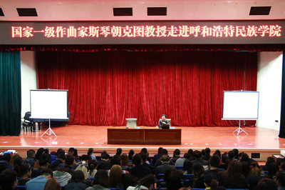 10月27日,作曲博士、國家一級作曲、中央民族大學音樂學院教授、學科帶頭人、碩士研究生導師、中國音樂家協會會員、中宣部文化名人暨《四個一批人才》、享受國務院特殊津貼、教育部新世紀人才、全國五一勞動獎章獲得者、全國五四青年獎章獲得者、我校客座教授斯琴朝克圖應邀在圖書館二樓報告廳為我校師生作了題為《我的創作與感想》的專題講座,500余名師生共同聆聽講座。講座由科技處處長包賽吉拉夫主持。