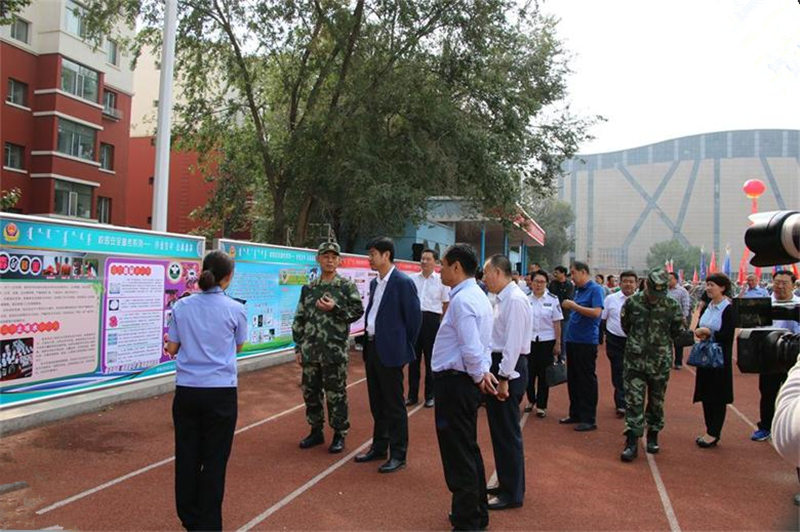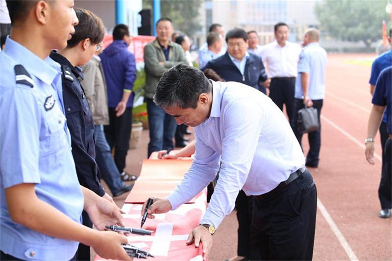 隨后,觀摩演練的領(lǐng)導(dǎo)和師生在條幅上簽名,并共同觀看了安全教育系列展板、呼市消防支隊一中隊消防官兵進行的滅火器滅火演示、消防車水帶出水演示以及學(xué)校保衛(wèi)處人員與所轄派出所民警聯(lián)合參演的防暴恐安全事件演練。