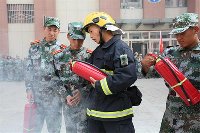 消防官兵講解滅火器使用方法
