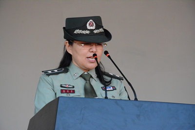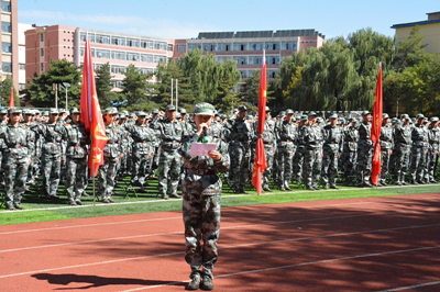 其次,北京軍區給水團武俊亭團長致辭。武團長強調指出,新生要提高認識,牢固樹立保家衛國的國防意識;要嚴明紀律,牢固樹立令行禁止的紀律意識;要態度端正,牢固樹立互幫互助的團隊意識,圓滿地完成軍訓任務。