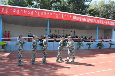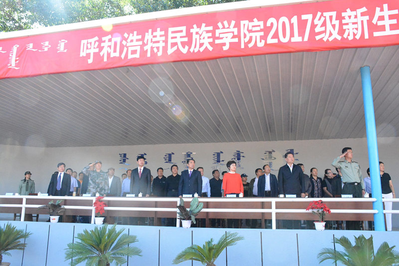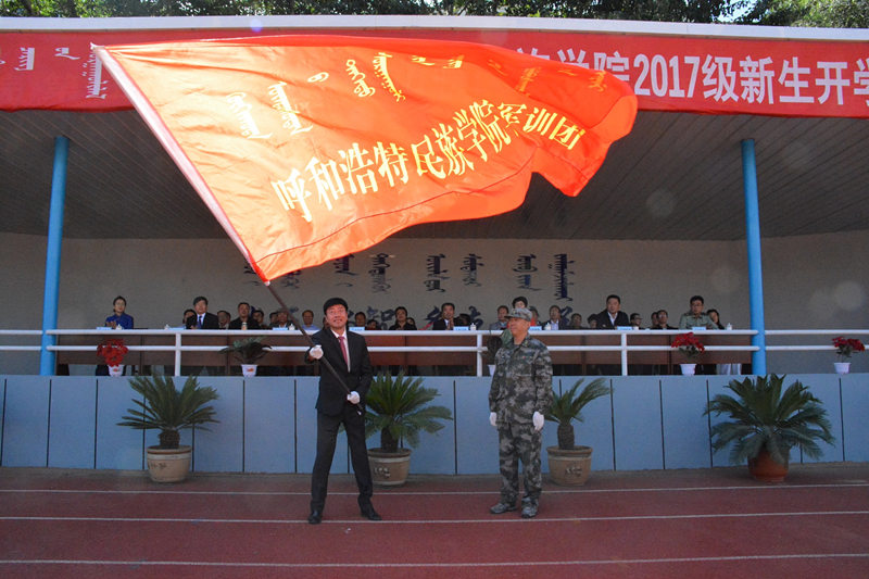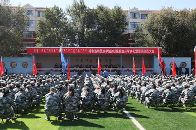 2017年9月11日上午10時,我校2017級新生開學典禮暨軍訓動員大會在學校操場隆重舉行。學校黨委書記孫國權,黨委副書記、院長格日樂圖,黨委副書記胡春梅,副院長阿拉坦倉、賀希格吉雅、納麗娜及北京軍區給水團團長武俊亭上校、內蒙古軍訓辦參謀張鵬飛少校出席大會,各職能部門負責人、系(部)黨總支書記、系主任、團總支書記、新生班主任及2017級全體新生參加了此次大會。大會由副院長納麗娜主持。