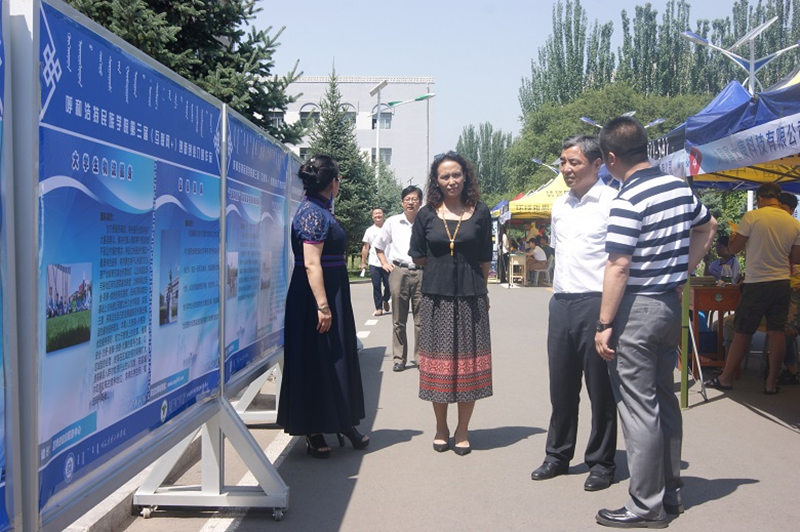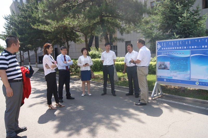 6月26日上午,學校黨委書記孫國權、院長格日樂圖、黨委副書記胡春梅、副院長阿拉坦倉、副院長賀希格吉雅、副院長納麗娜等領導同志,在相關部門負責人的陪同下參觀了入圍呼和浩特民族學院第三屆《互聯網+》創新創業大賽校賽作品展,朝格吉樂圖主任向各位領導詳細介紹了本次大賽賽事進展情況。