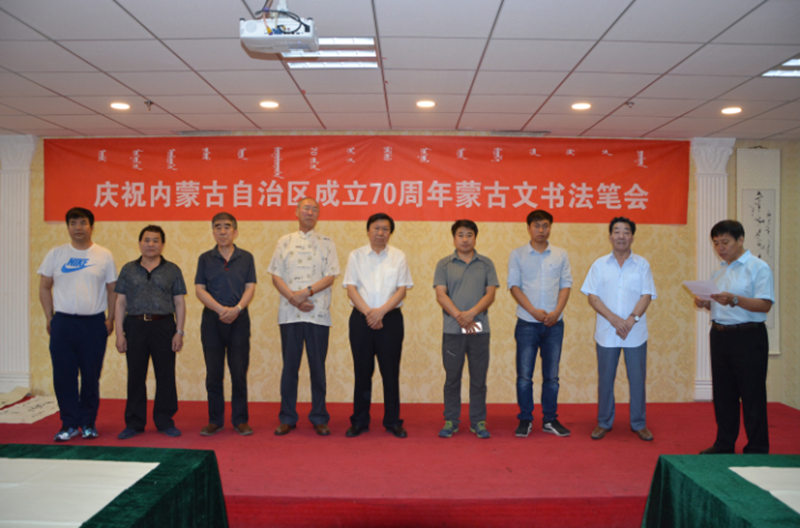 根據《呼和浩特民族學院慶祝自治區成立70周年活動方案》,6月10日(全國文化遺產日)學校成功舉辦了以“慶祝內蒙古自治區成立70周年”為主題的國家非物質文化遺產—蒙古文書法筆會。內蒙古自治區乃至全國著名的八位蒙古文書法家受邀參加了筆會。內蒙古自治區蒙古文書法家協會黨支部書記、內蒙古自治區政府參事、著名蒙古文書法家白布和教授致辭。學校科技處處長、國家民委第二批人文社科重點研究基地——“蒙古族非物質文化遺產研究基地”負責人包賽吉拉夫教授主持筆會。