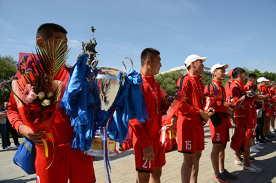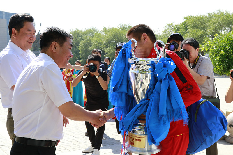 歡迎儀式上,黨委副書記、格日樂圖院長代表學(xué)校和全體師生員工,向為我校、為自治區(qū)爭奪榮譽的健兒們致以熱烈的歡迎和衷心的祝賀。格日樂圖院長在講話中指出,我校男子足球隊領(lǐng)隊、教練員和運動員,在訓(xùn)練和比賽中體現(xiàn)了珍惜榮譽,立足本職,建功立業(yè)的寶貴品質(zhì);展示了敢為人先,永不言棄,百折不撓的堅強意志;表現(xiàn)了精誠團結(jié),勇于爭先,攻堅克難的優(yōu)良作風(fēng);發(fā)揚了吃苦耐勞,一往無前,萬馬奔騰的拼搏精神。正是這種品質(zhì)和精神,我們的足球隊才能夠在全國西北賽區(qū)的16支隊伍中脫穎而出,取得全勝戰(zhàn)績,捧回了西北賽區(qū)冠軍獎杯。這些成績的取得,離不開自治區(qū)黨委政府的正確領(lǐng)導(dǎo)和關(guān)心關(guān)愛,離不開社會各界的大力支持和熱情幫助,離不開全校師生員工的潛心支持和鼓勁助威,希望全校師生員工以男子足球隊為榜樣,精誠團結(jié)、永不言棄、立足本職、敢為人先,為學(xué)校更好更快發(fā)展做出新的貢獻。希望我校男子足球隊繼續(xù)發(fā)揚敢闖敢拼、敢于勝利的決心和信心,在今年7月份舉行的全國總決賽中再創(chuàng)佳績,再創(chuàng)輝煌。