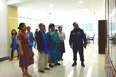 盧沃棠先生一行首先參觀了我校體育館,現場體驗及詳細了解了蒙古族“搏克”、“民族健身操”、“沙嘎游藝”、“沙嘎哈日靶”、“蒙古象棋”、“包根吉日格”、“傳統射箭”、“傳統布魯”等傳統教學項目。隨后,考察了校園及周邊環境,現場聽取了學校工作情況匯報,并就有關問題與校領導進行了交流。