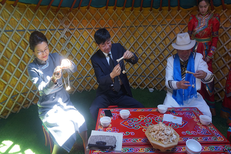隨著民族文化藝術(shù)表演結(jié)束,那達(dá)慕傳統(tǒng)體育比賽正式開始。學(xué)校領(lǐng)導(dǎo)一行觀看體驗(yàn)了蒙古族傳統(tǒng)體育項(xiàng)目,并觀摩了由學(xué)校美術(shù)系舉辦的國畫展。
