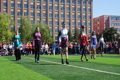 開幕式上,由國旗隊(duì)、儀仗隊(duì)、師生民族體育代表方隊(duì)、各系代表隊(duì)、裁判方隊(duì)等組成的入場(chǎng)隊(duì)伍,身著特色服裝,高舉象征民族圖騰的蘇魯定旗幟,逐一經(jīng)過主席臺(tái)接受檢閱。