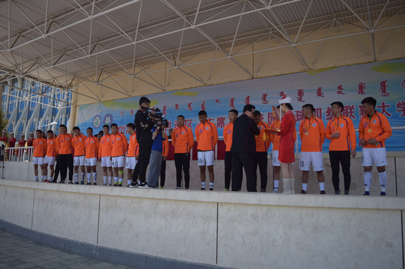 決賽由我校男子足球隊對戰(zhàn)內蒙古農業(yè)大學男子足球隊。最終,我校以1比0勝出,獲得本屆“主席杯”比賽校園組冠軍。教練員南丁寶力格老師獲得“優(yōu)秀教練員”榮譽稱號,易吉樂同學獲得“最佳射手”榮譽稱號。