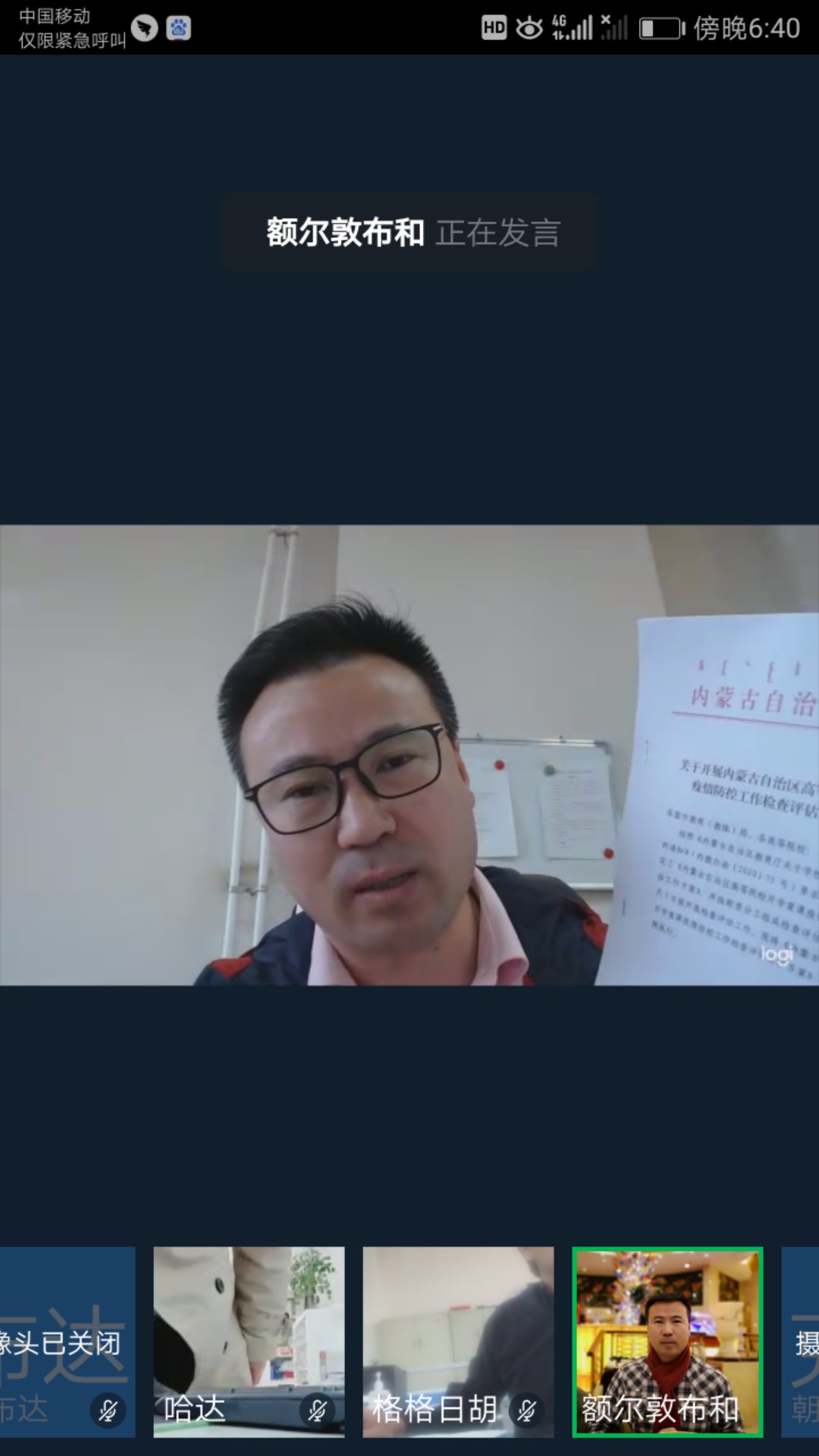 4月27日下午,學校教務處在釘釘軟件平臺上召開開學復課預案研討視頻工作會議。會議就學校開學復課方案展開專題研討。教務處處長額爾敦布和、副處長哈斯額爾德尼、副處長佟繁榮、各二級學院院長、副院長和教務處相關人員參加了此次工作會議。教務處處長額爾敦布和主持會議。